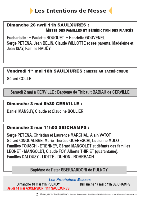 HORAIRES DES MESSES